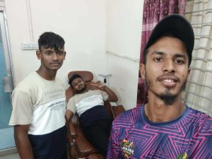ছবি : রক্ত দান কর্মসূচিতে আহাম্মেদ জুবায়ের।